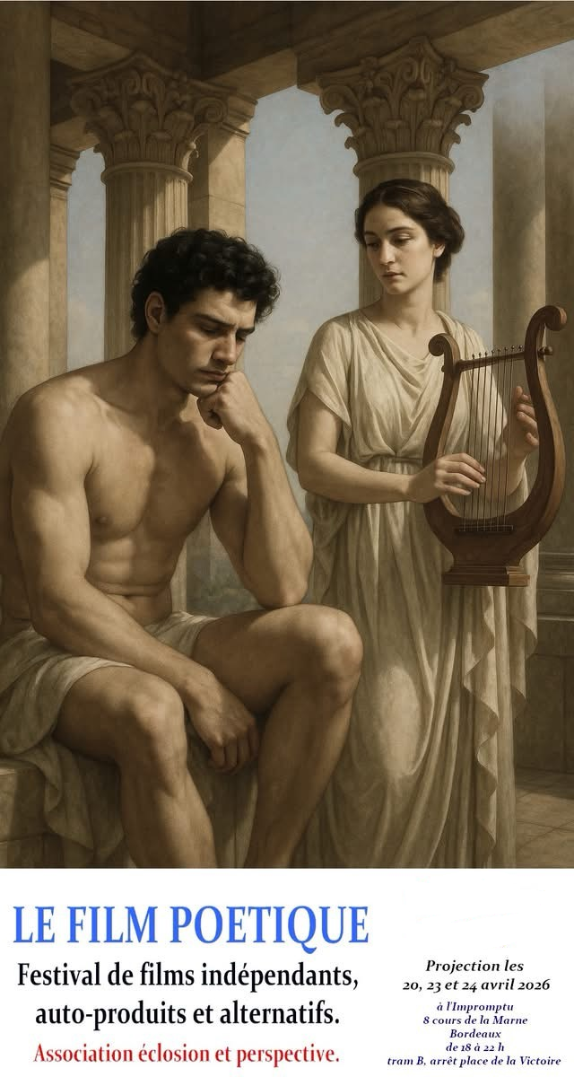 J’ai le plaisir de vous inviter au festival « Le film poétique » qui se déroulera les 20, 22, 23 et 27 avril de 18h à 22h au cinéma « L’impromptu », 8 cours de la Marne à Bordeaux.
